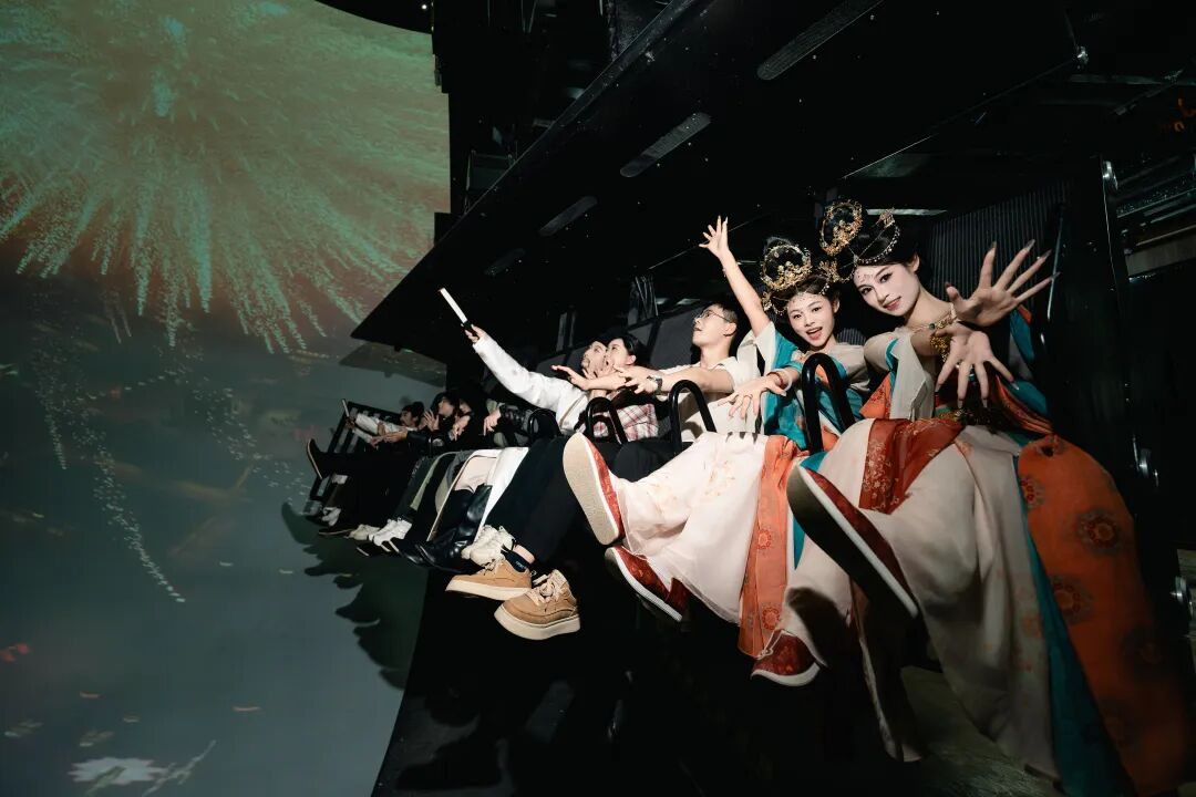 游客在曲江飞行剧院沉浸式体验唐文化。曲江新区融媒体中心供图