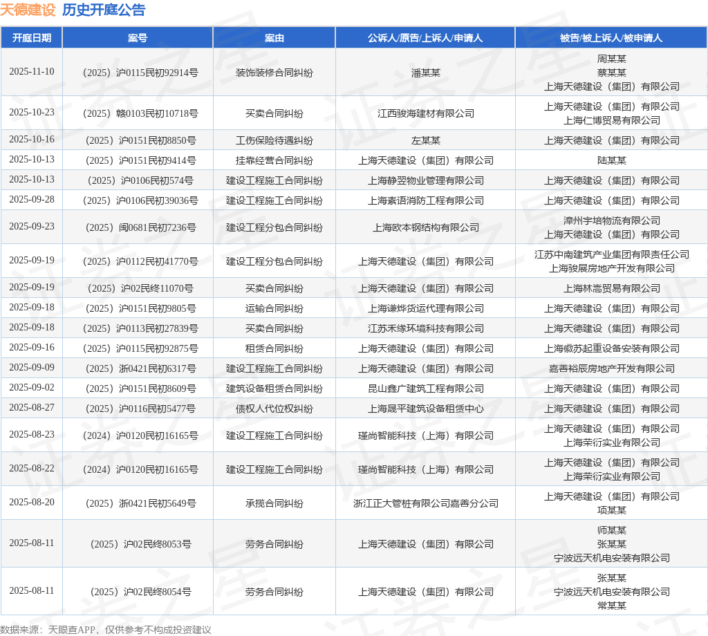 本站消息配资世界门户,根据天眼查APP显示,近日公布了一则上海天德建设(集团)有限公司作为原告/上诉人的开庭公告,详细内容如下: